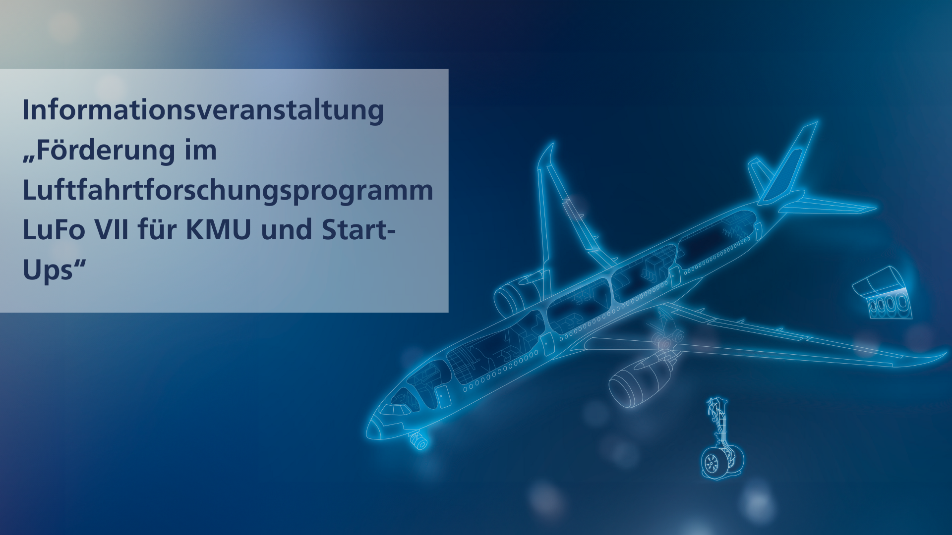 Das Bundesministerium für Wirtschaft und Energie lädt Sie herzlich ein zu einer Informationsveranstaltung für KMU und Start-Ups, die sich für eine Förderung im nächsten Call des Luftfahrtforschungsprogramms interessieren. Hier erfahren Sie alles rund um den aktuellen Forschungsbedarf und die administrativen Vorraussetzung für eine Förderung durch das BMWE. Die Veranstaltung findet digital per Webex statt.